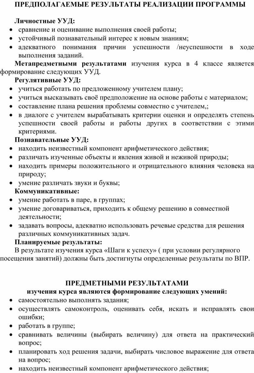 В результате изучения курса «Шаги к успеху» ( при условии регулярного посещения занятий) должны быть достигнуты определенные результаты по ВПР.