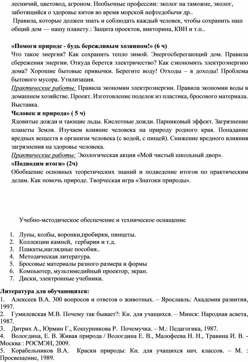 «Помоги природе - будь бережливым хозяином!» (6 ч)
