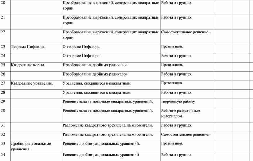 · уметь выполнять преобразования выражений, содержащих квадратные корни;