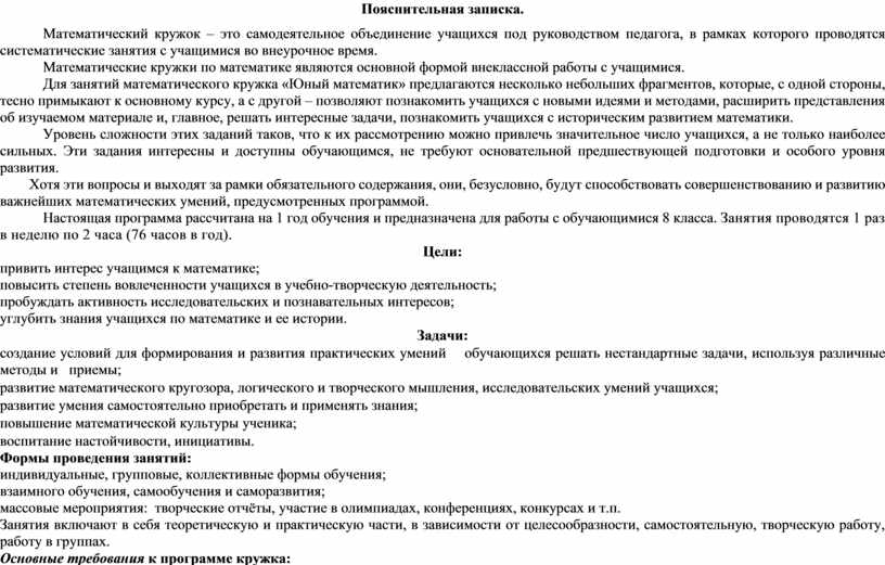 Математический кружок – это самодеятельное объединение учащихся под руководством педагога, в рамках которого проводятся систематические занятия с учащимися во внеурочное время.