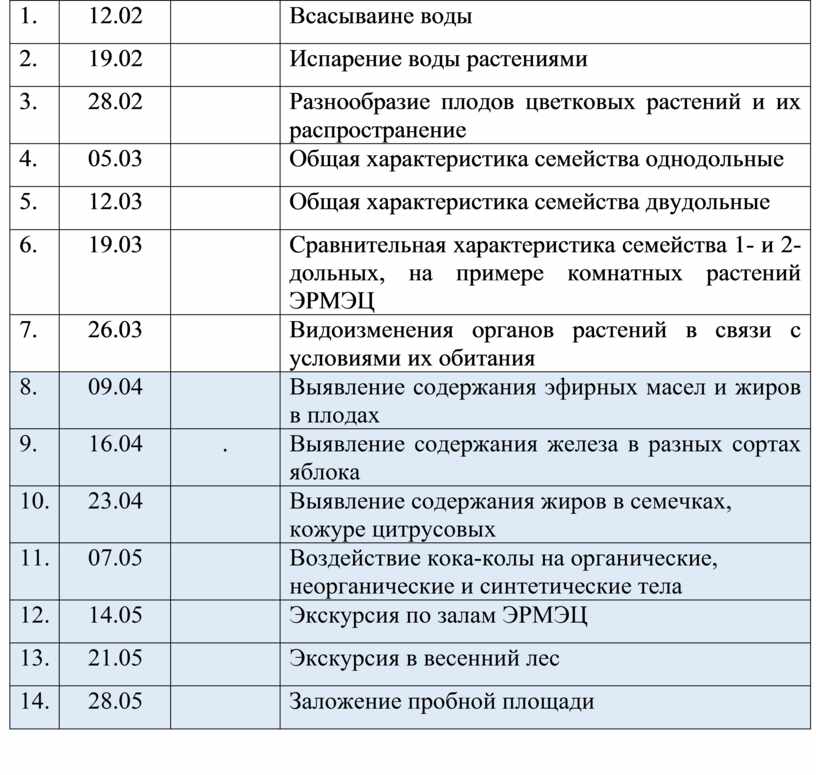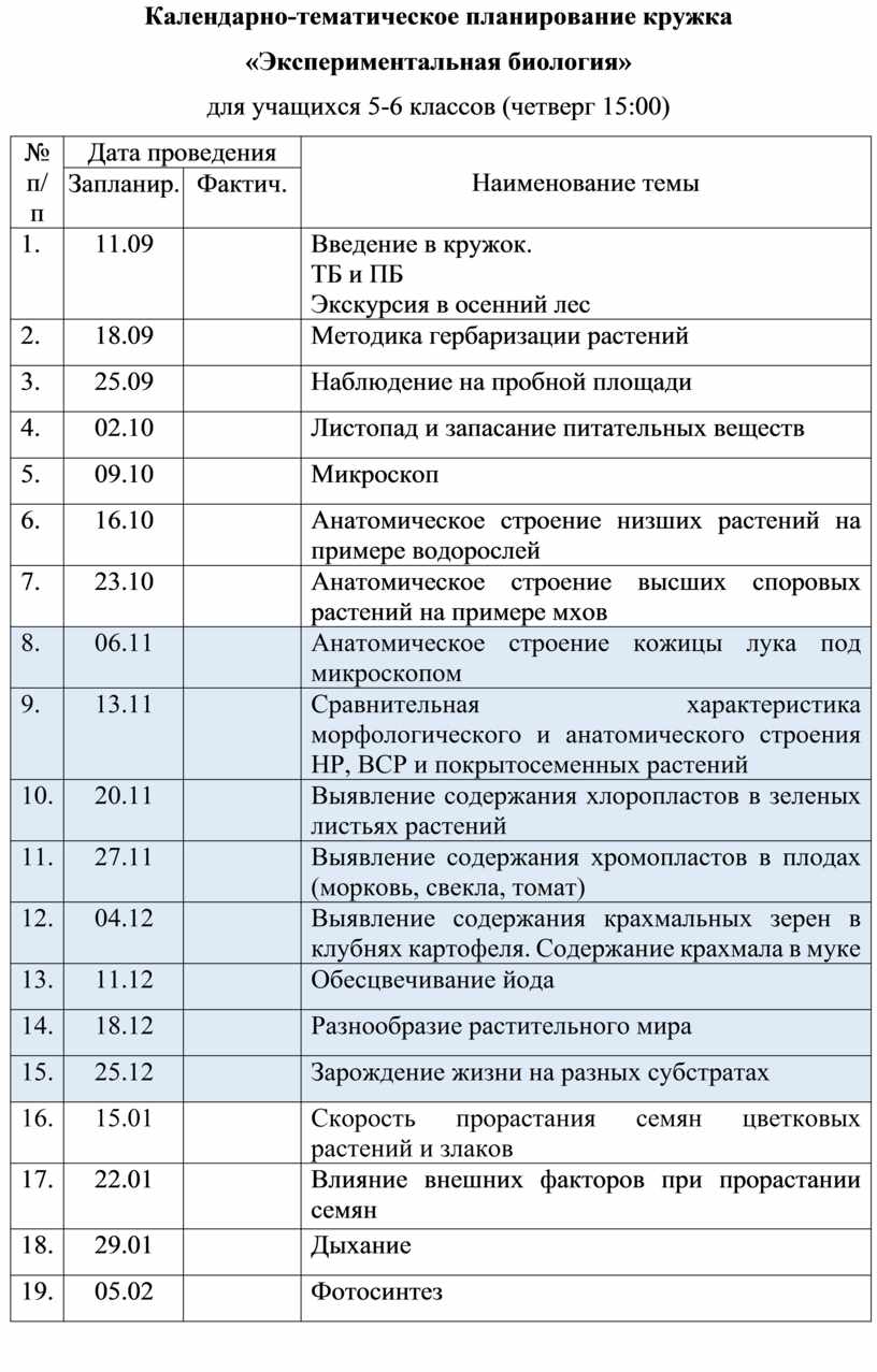 Календарно-тематическое планирование кружка «Экспериментальная биология» для учащихся 5-6 класса |