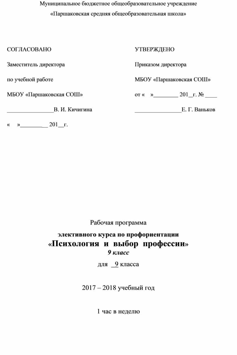 элективного курса по профориентации