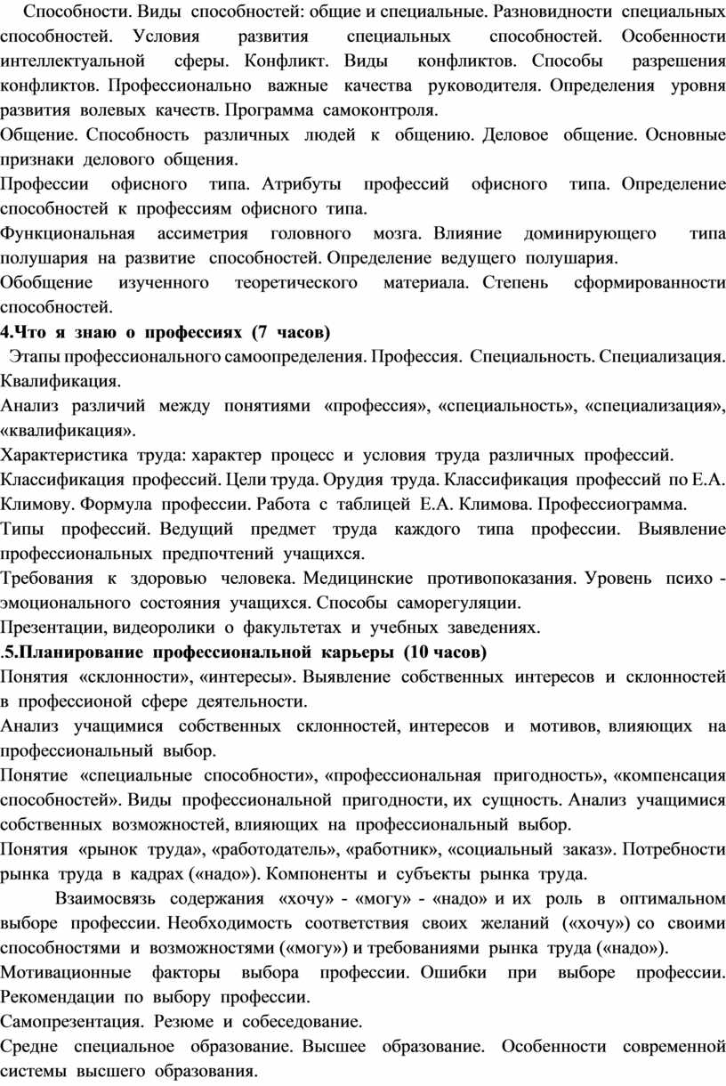 .5.Планирование профессиональной карьеры (10 часов)