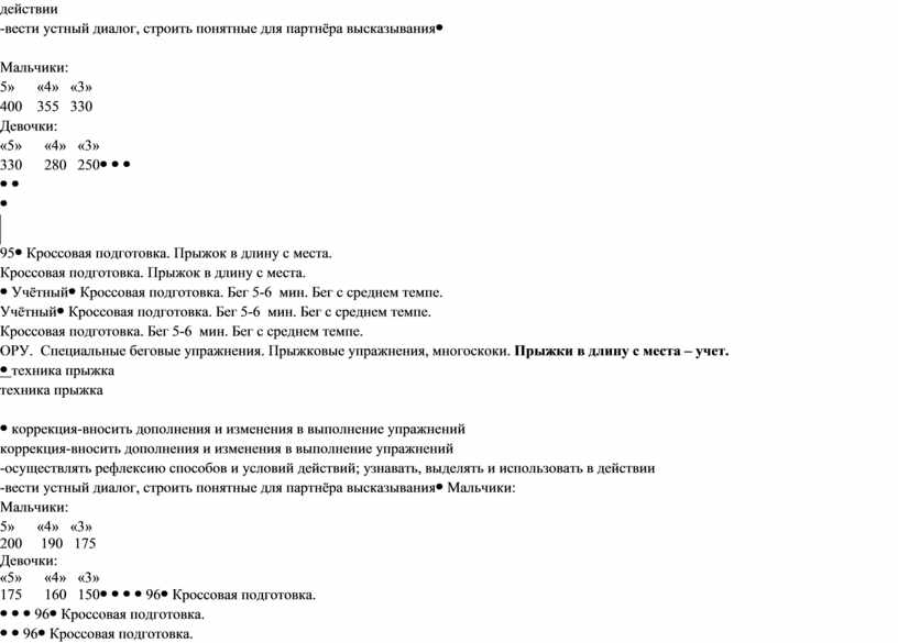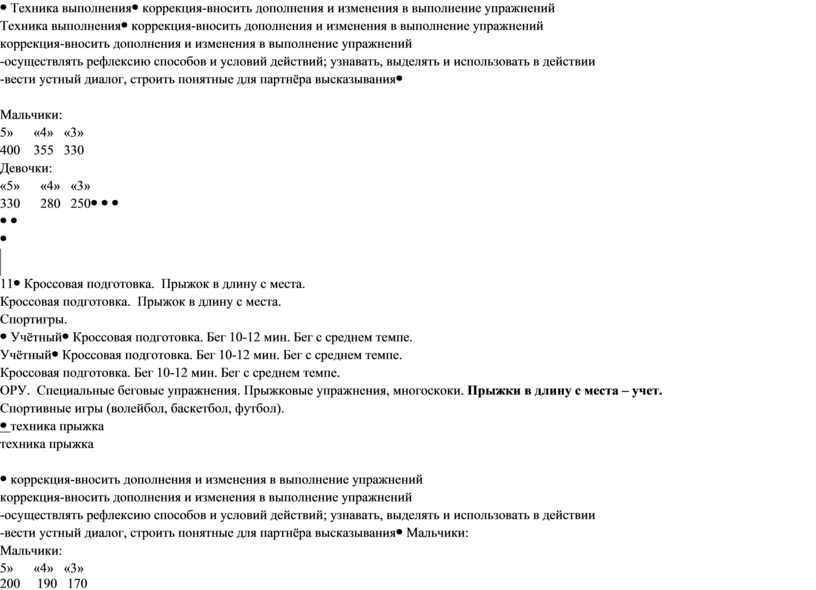 Мальчики: 5» «4» «3» 200 190 175 Девочки: «5» «4» «3» 175 160 150 |