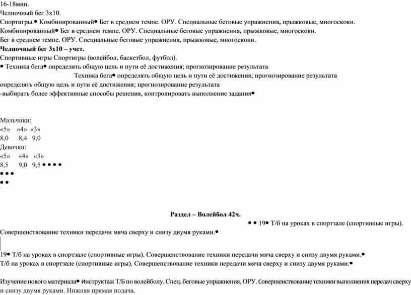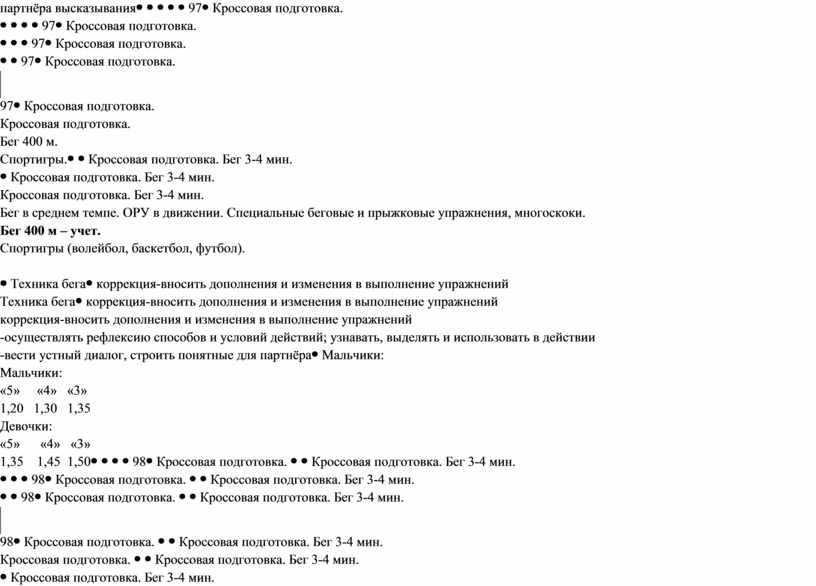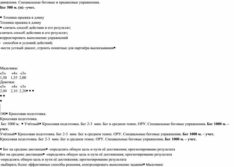 Мальчики: «5» «4» «3» 1.00 1.10 1.15 Девочки: «5» «4» «3» 1.10 1.20 1.25 |