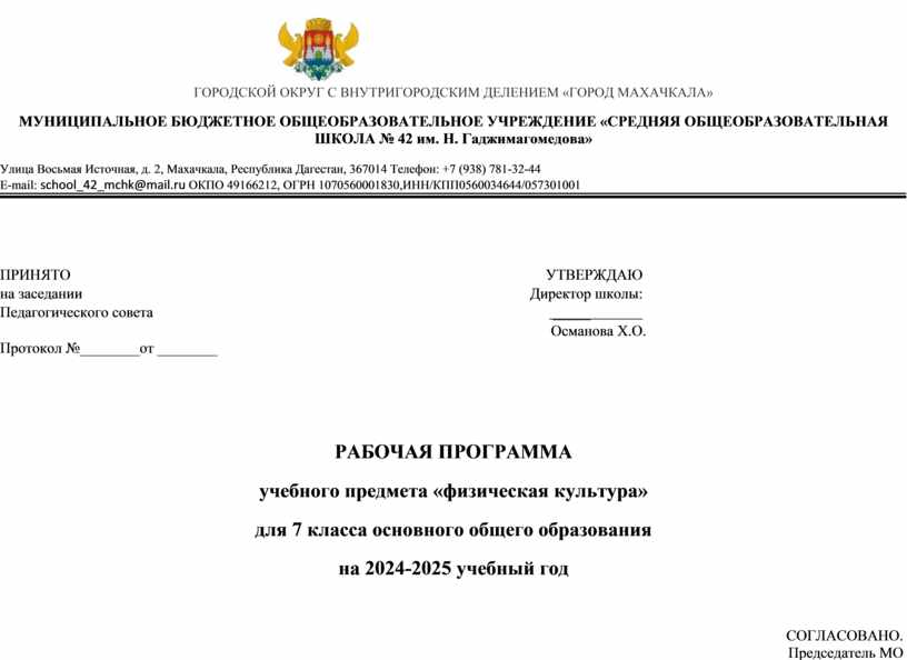 МУНИЦИПАЛЬНОЕ БЮДЖЕТНОЕ ОБЩЕОБРАЗОВАТЕЛЬНОЕ УЧРЕЖДЕНИЕ «СРЕДНЯЯ ОБЩЕОБРАЗОВАТЕЛЬНАЯ ШКОЛА № 42 им. Н. Гаджимагомедова»