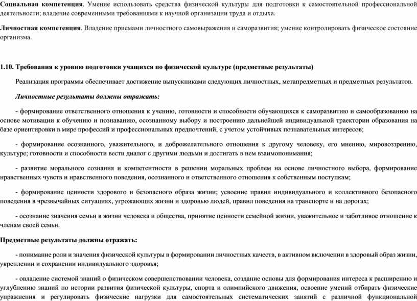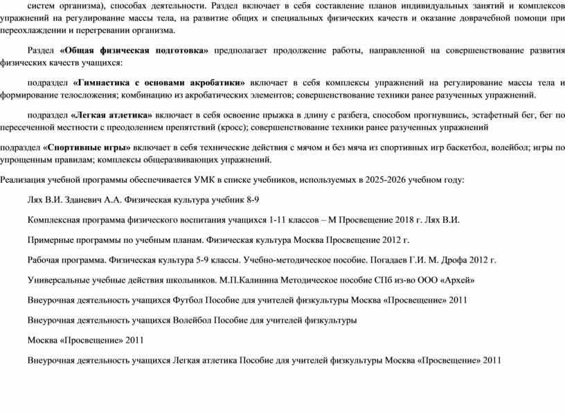 Данный учебный курс по физической культуре в полном объеме соответствует федеральным государственным образовательным стандартам.