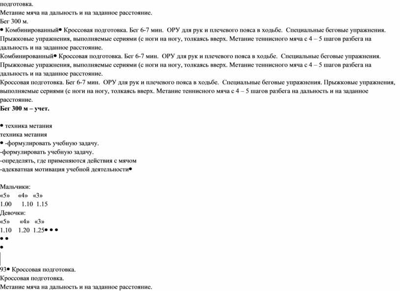 Кроссовая подготовка. Метание мяча на дальность и на заданное расстояние. Прыжок в длину с разбега.