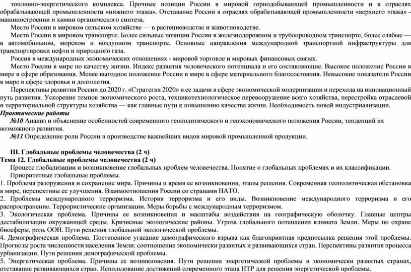 П/р №10 Анализ и объяснение особенностей современного геополитического и геоэкономического положения России, тенденций их возможного развития. |