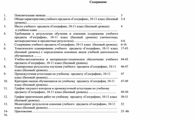 Место учебного предмета «География», 10-11 класс (базовый уровень) в учебном плане ………………………………………………………………….. |