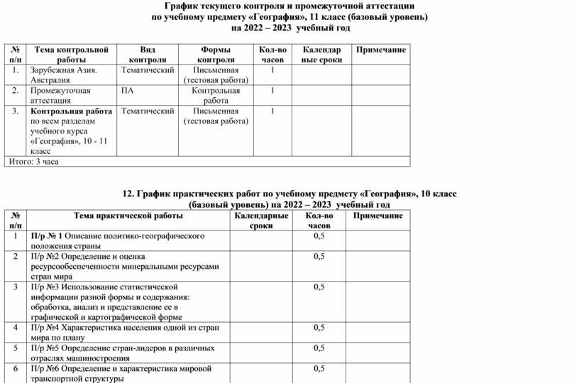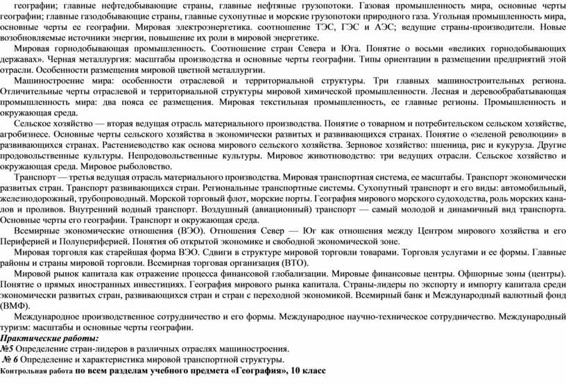 График практических работ по учебному предмету «География», 10-11 класс (базовый уровень)………………………………………………………………… |