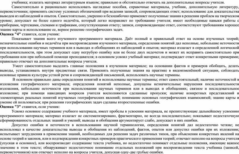 Критерии оценок обучающихся по учебному предмету «География, 10-11 класс (базовый уровень)………………………………………………………… |