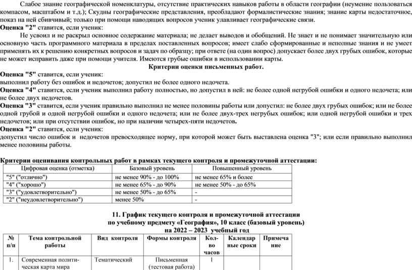 График текущего контроля и промежуточной аттестации по учебному предмету «География», 10-11 класс (базовый уровень)……………………… |