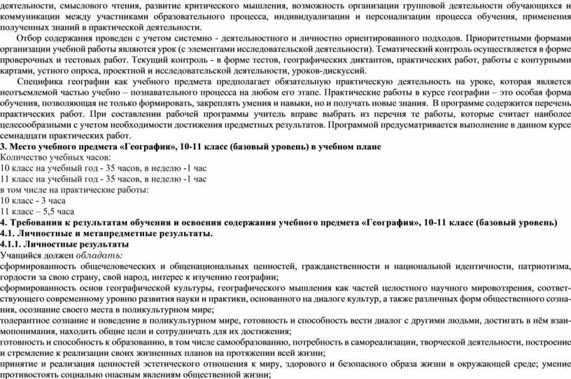 3. Место учебного предмета «География», 10-11 класс (базовый уровень) в учебном плане