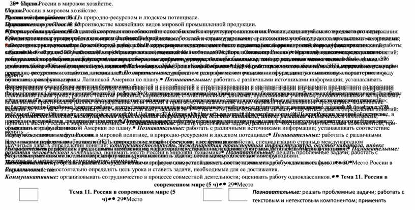 П/р №11 Определение роли России в производстве важнейших видов мировой промышленной продукции. |