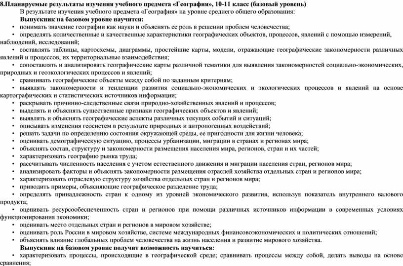 Изучение географии на базовом уровне ориентировано на обеспечение общеобразовательной и общекультурной подготовки выпускников.