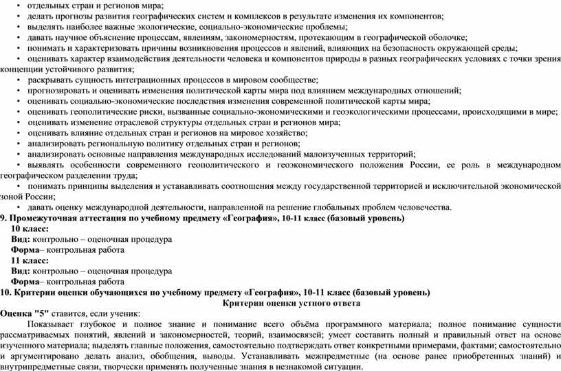 Промежуточная аттестация по учебному предмету «География», 10-11 класс (базовый уровень)......................................................................................... |