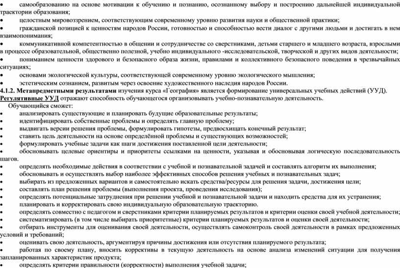 4.1.2. Метапредметными результатами изучения курса «География» является формирование универсальных учебных действий (УУД).