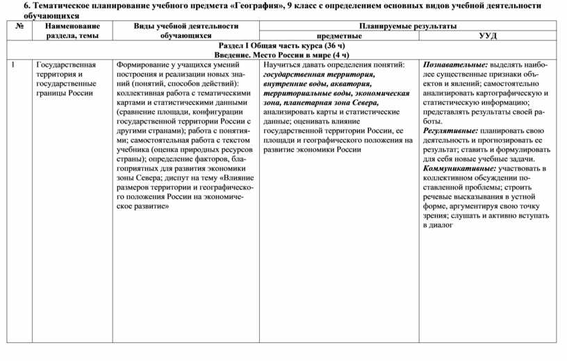 Тематическое планирование учебного предмета «География», 9 класс определением основных видов учебной деятельности обучающихся……. |