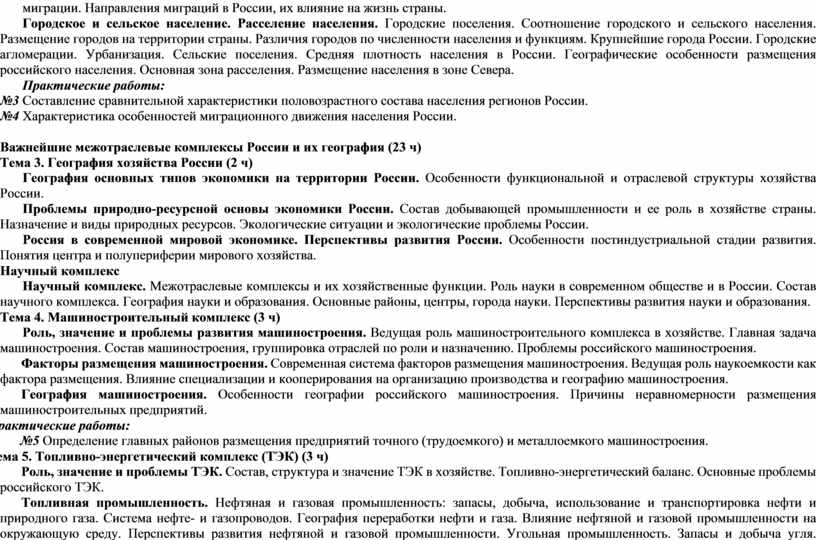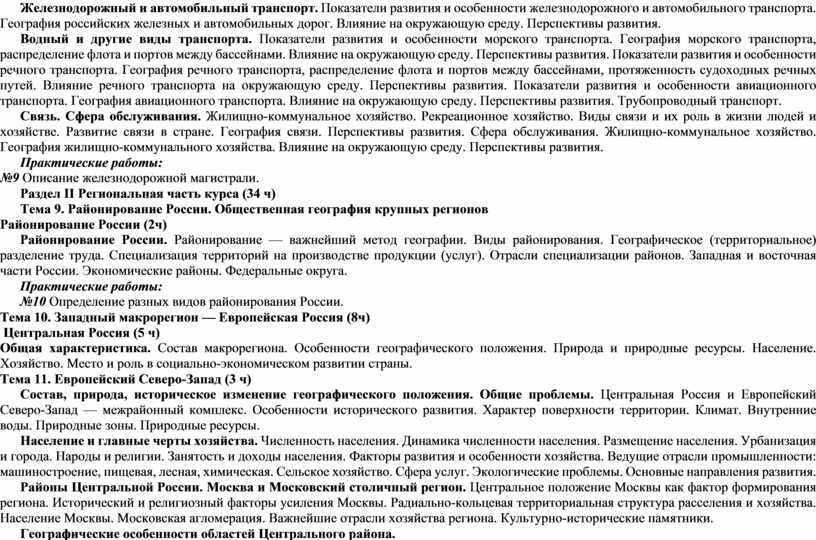 Изложенный в программе материал соответствует разделам стандарта основного общего образования по географии и состоит из следующих разделов: «Общая характеристика населения и хозяйства России», «Характеристика географических районов России»
