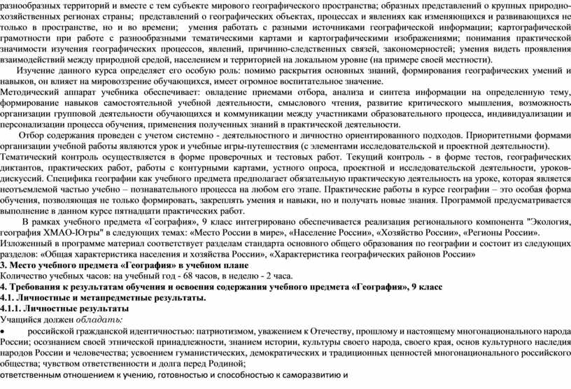 2. Общая характеристика учебного предмета «География», 9 класс