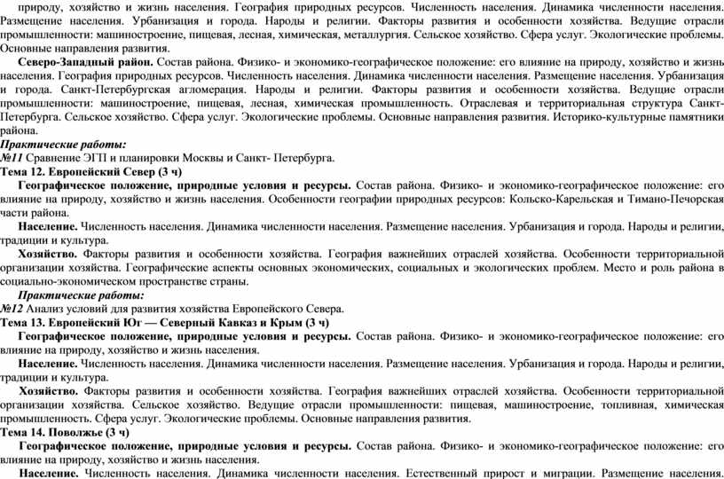 П/р №12 Анализ условий для развития хозяйства Европейского Севера |