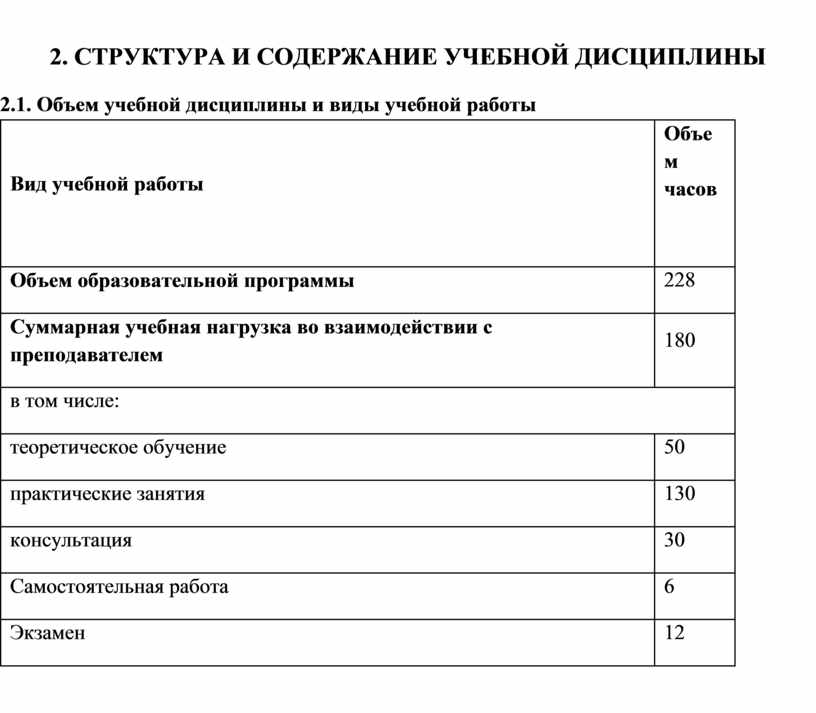 2. СТРУКТУРА И СОДЕРЖАНИЕ УЧЕБНОЙ ДИСЦИПЛИНЫ