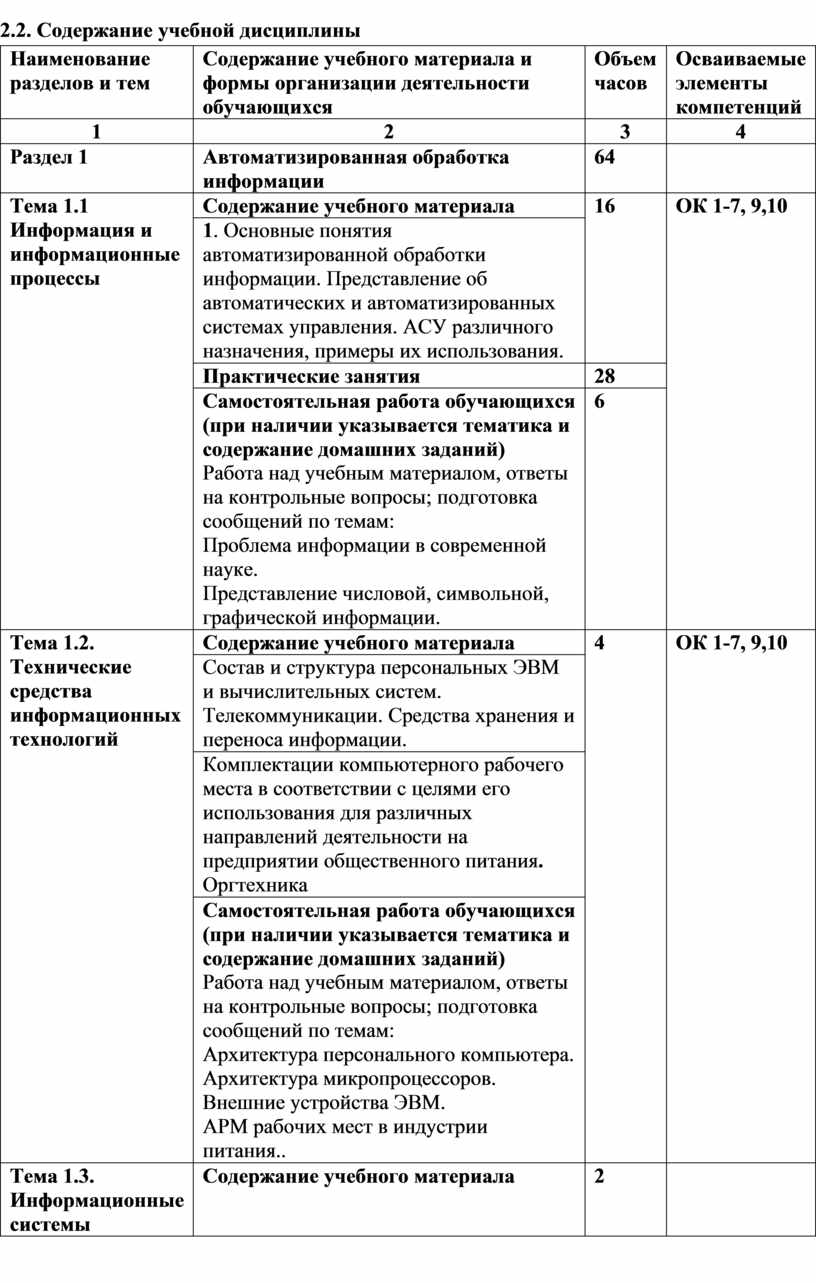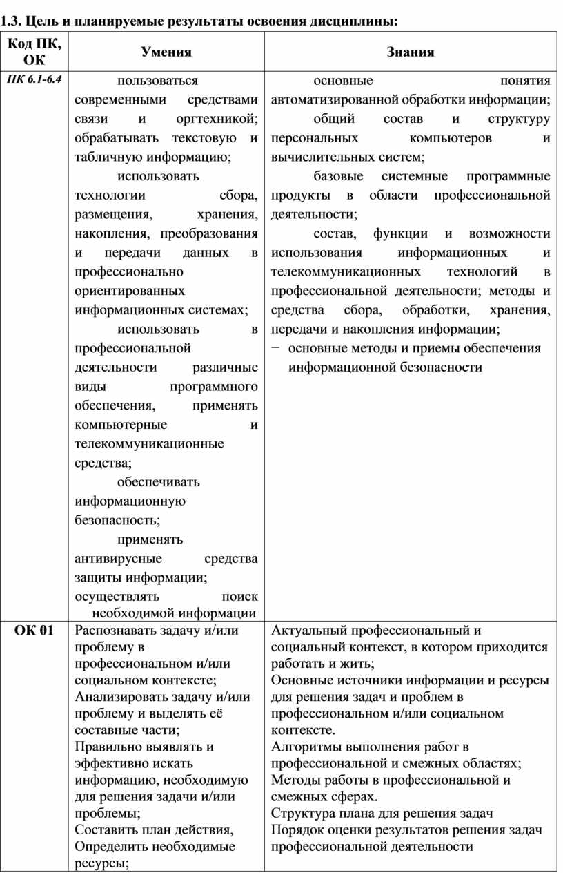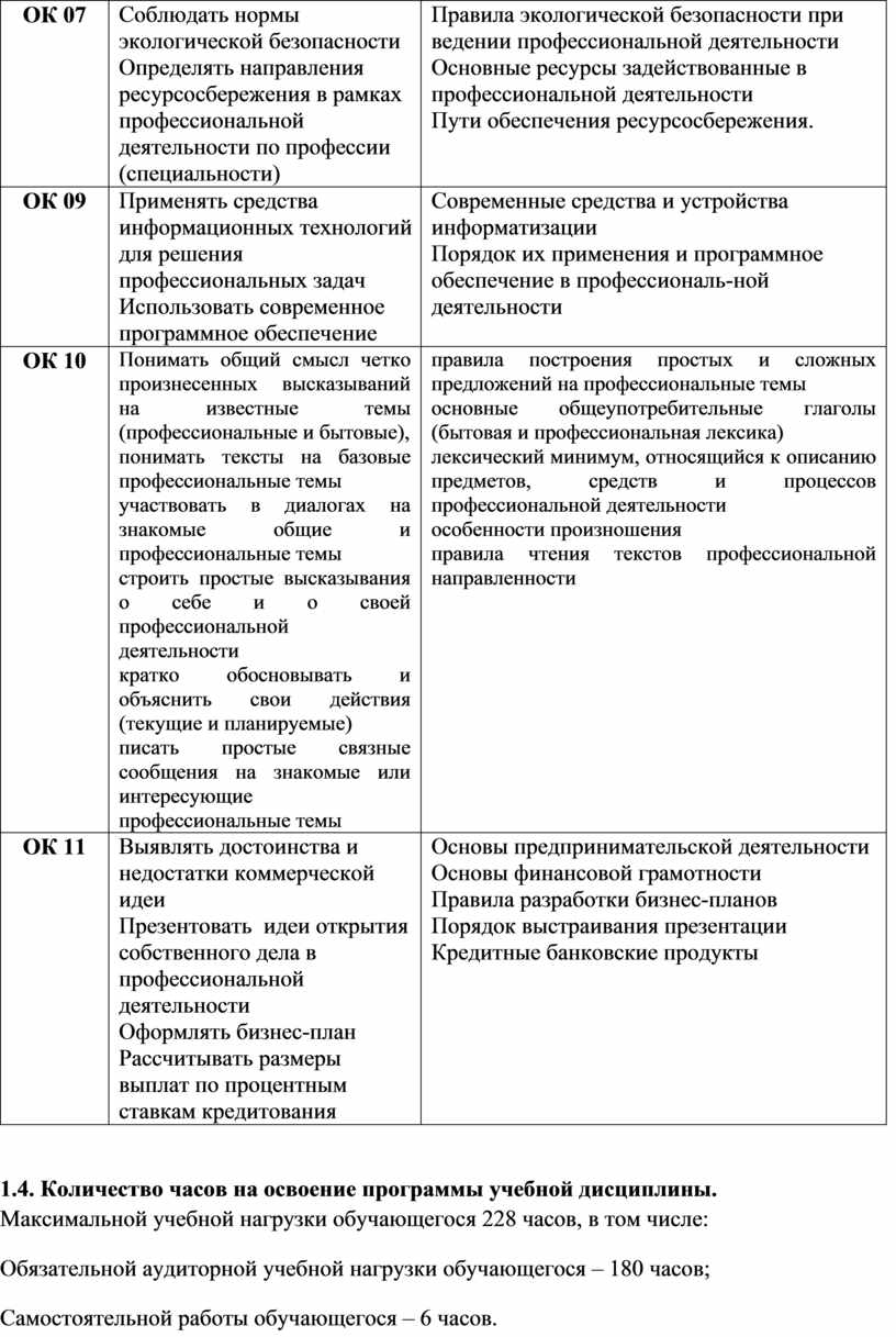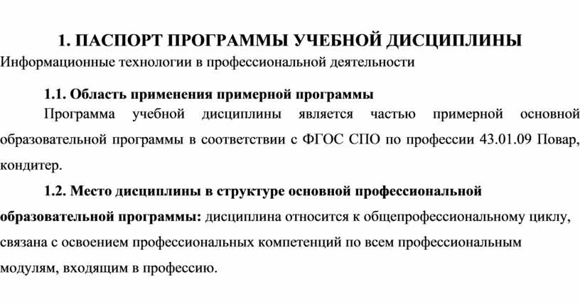 1.2. Место дисциплины в структуре основной профессиональной образовательной программы: дисциплина относится к общепрофессиональному циклу, связана с освоением профессиональных компетенций по всем профессиональным модулям, входящим в профессию.