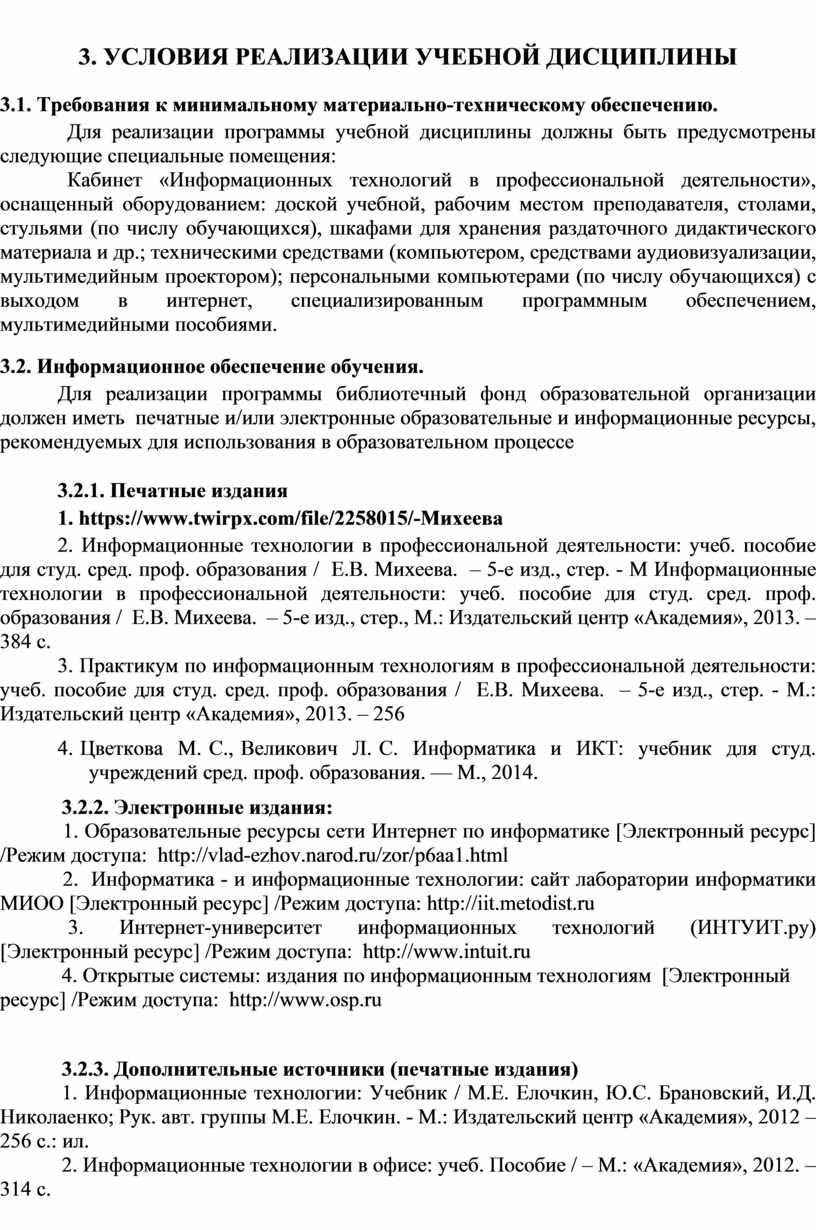 2. Информационные технологии в профессиональной деятельности: учеб. пособие для студ. сред. проф. образования / Е.В. Михеева. – 5-е изд., стер. - М Информационные технологии в профессиональной деятельности: учеб. пособие для студ. сред. проф. образования / Е.В. Михеева. – 5-е изд., стер., М.: Издательский центр «Академия», 2013. – 384 с.