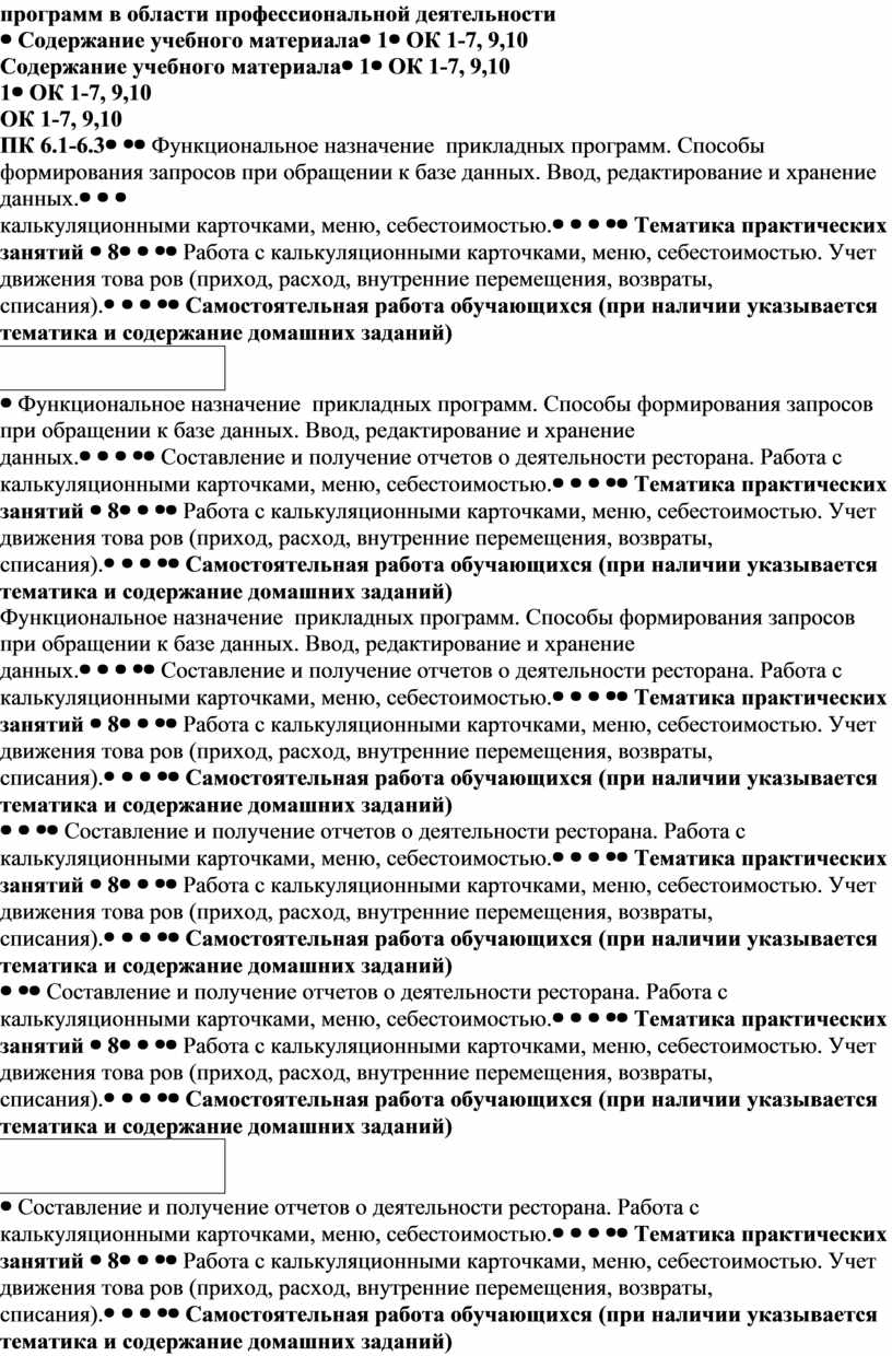 ОК 1-7, 9,10 ПК 6.1-6.3 |