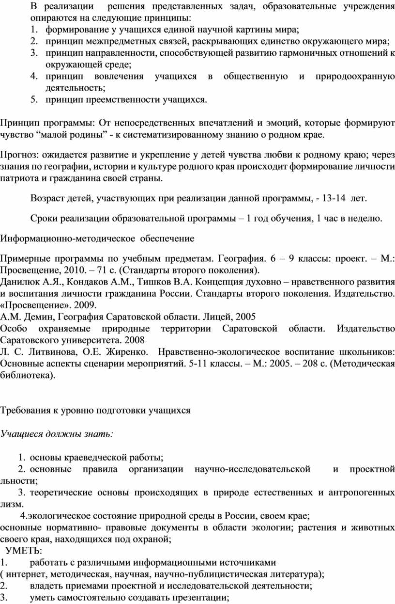 4. принцип вовлечения учащихся в общественную и природоохранную деятельность;