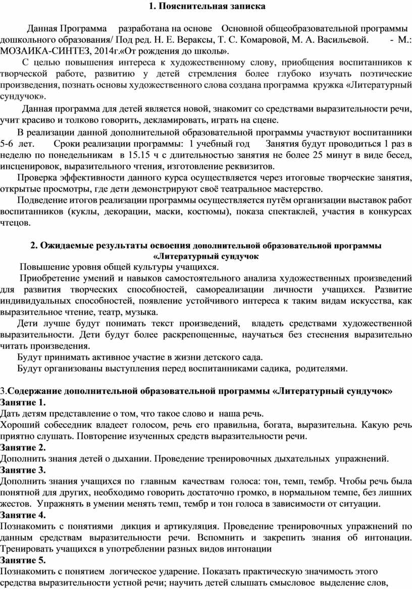 3.Содержание дополнительной образовательной программы «Литературный сундучок»