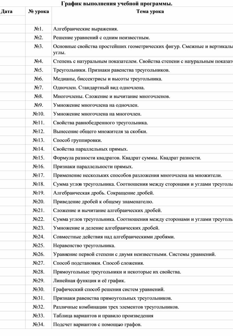 График выполнения учебной программы.
