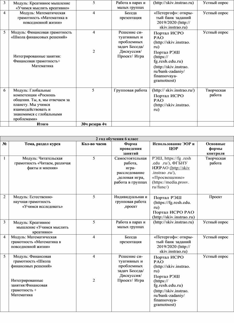 Портал ИСРО РАО (http://skiv.instrao. ru) Портал РЭШ (https:// fg.resh.edu.ru) (http://skiv.instrao. ru/bank-zadaniy/ finansovaya- gramotnost)