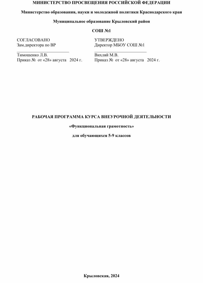 СОГЛАСОВАНО Зам.директора по ВР ________________________ Тимошенко Л.В. Приказ № от «28» августа 2024 г.