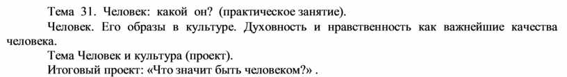 Тема 31. Человек: какой он? (практическое занятие).