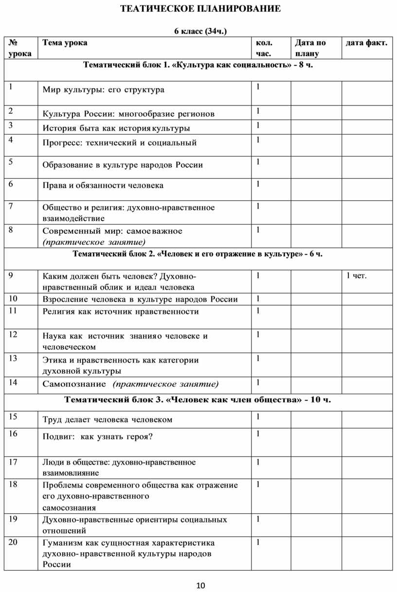 Тематический блок 2. «Человек и его отражение в культуре» - 6 ч. |