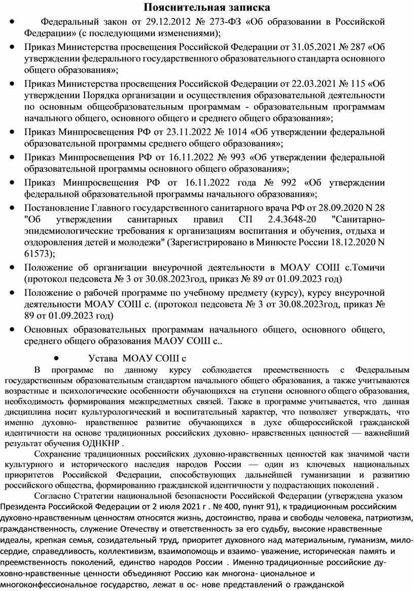 · Положение об организации внеурочной деятельности в МОАУ СОШ с.Томичи (протокол педсовета № 3 от 30.08.2023год, приказ № 89 от 01.09.2023 год)