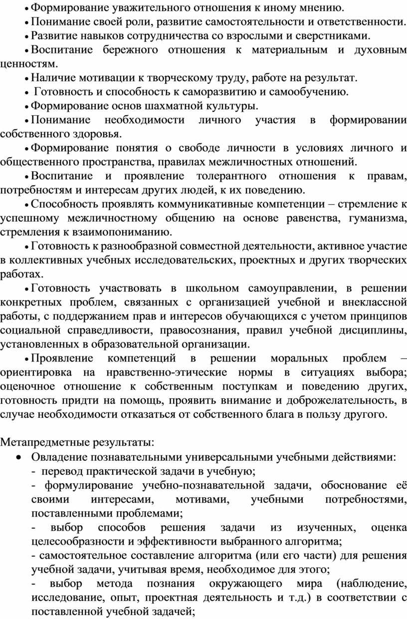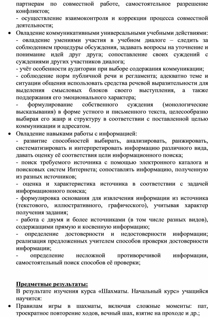 В результате изучения курса «Шахматы. Начальный курс» учащийся научится: