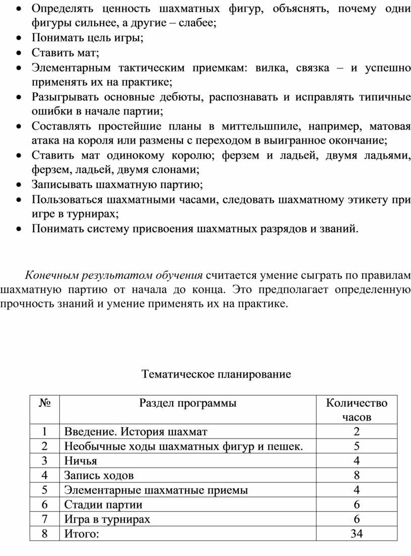 · Составлять простейшие планы в миттельшпиле, например, матовая атака на короля или размены с переходом в выигранное окончание;