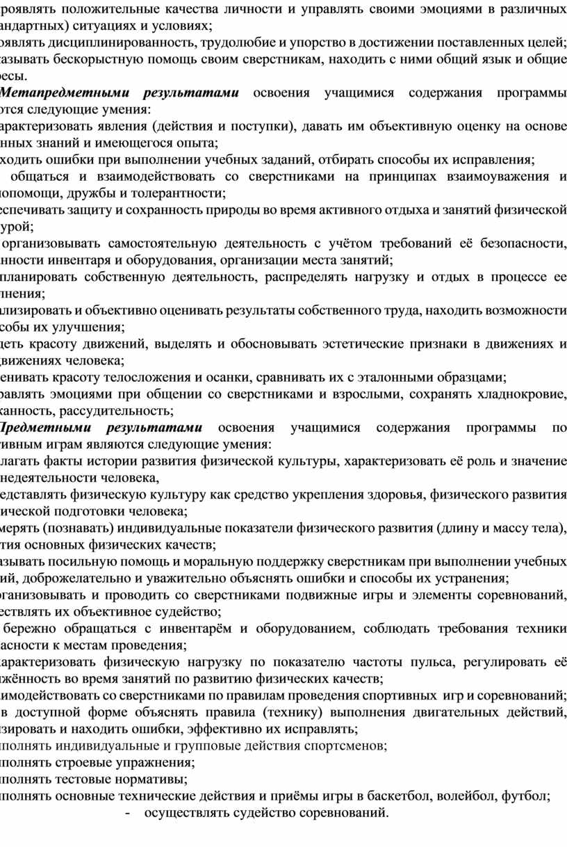 Предметными результатами освоения учащимися содержания программы по спортивным играм являются следующие умения: