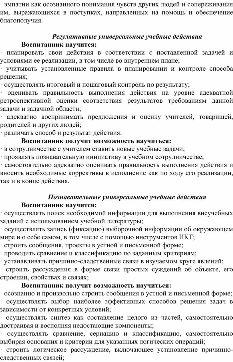 Регулятивные универсальные учебные действия