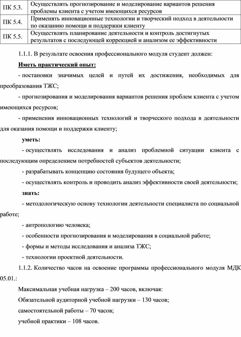 1. ОБЩАЯ ХАРАКТЕРИСТИКА РАБОЧЕЙ ПРОГРАММЫ ПРОФЕССИОНАЛЬНОГО МОДУЛЯ ПМ.05 ПРОЕКТИРОВАНИЕ СОЦИАЛЬНОЙ РАБОТЫ С РАЗЛИЧНЫМИ КАТЕГОРИЯМИ ГРАЖДАН, ОКАЗАВШИХСЯ В ТЖС МДК 05.01. ПРОЕКТНАЯ ДЕЯТЕЛЬНОСТЬ СПЕЦИАЛИСТА ПО СОЦИАЛЬНОЙ РАБОТЕ ПО СПЕЦИАЛЬНОСТИ 39.02.01 СОЦИАЛЬНАЯ РАБОТА
