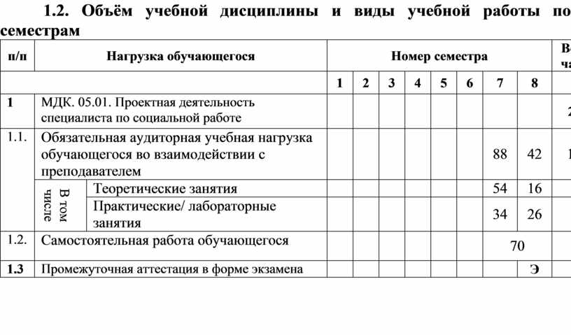 1.2. Объём учебной дисциплины и виды учебной работы по семестрам