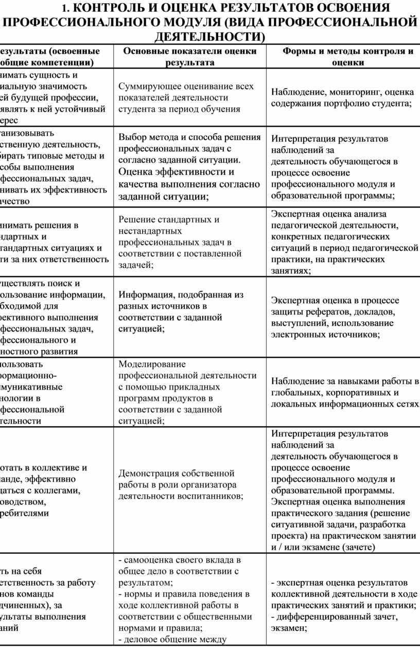 4. КОНТРОЛЬ И ОЦЕНКА РЕЗУЛЬТАТОВ ОСВОЕНИЯ ПРОФЕССИОНАЛЬНОГО МОДУЛЯ (ВИДА ПРОФЕССИОНАЛЬНОЙ ДЕЯТЕЛЬНОСТИ)