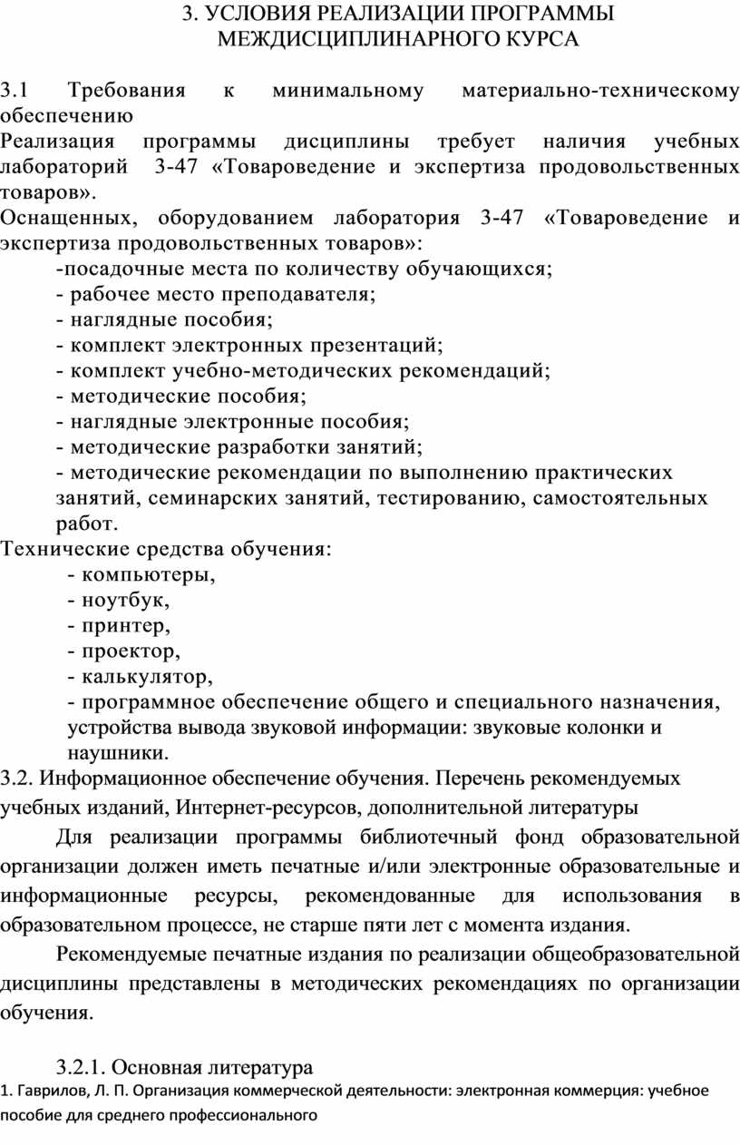3. УСЛОВИЯ РЕАЛИЗАЦИИ ПРОГРАММЫ МЕЖДИСЦИПЛИНАРНОГО КУРСА