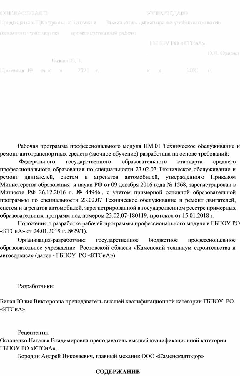 Организация-разработчик: государственное бюджетное профессиональное образовательное учреждение Ростовской области «Каменский техникум строительства и автосервиса» (далее - ГБПОУ РО «КТСиА»)