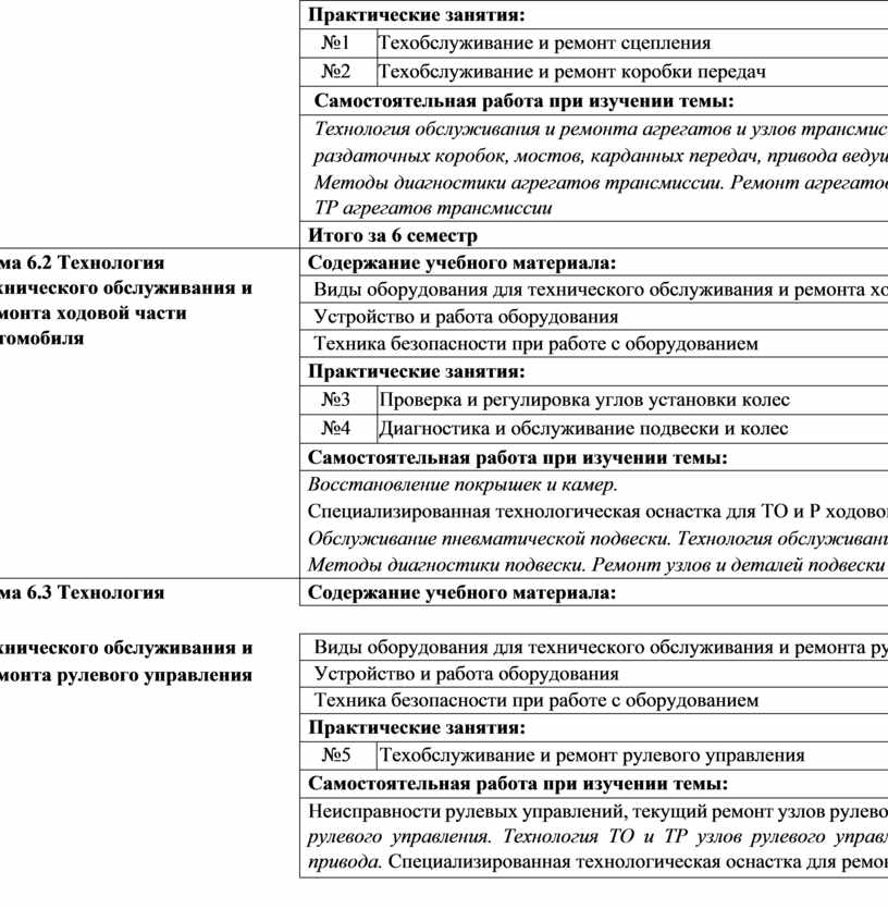 Техническое обслуживание и ремонт шасси автомобилей |