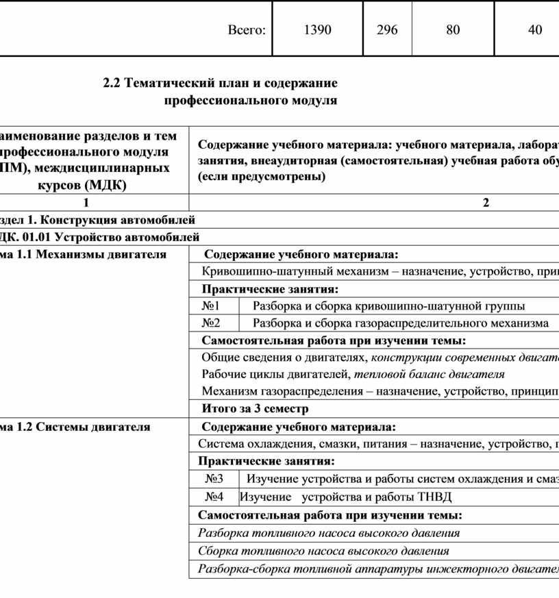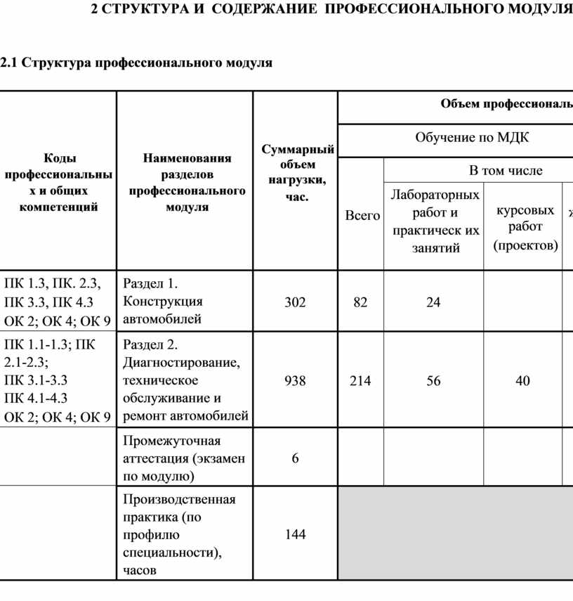2 СТРУКТУРА И СОДЕРЖАНИЕ ПРОФЕССИОНАЛЬНОГО МОДУЛЯ
