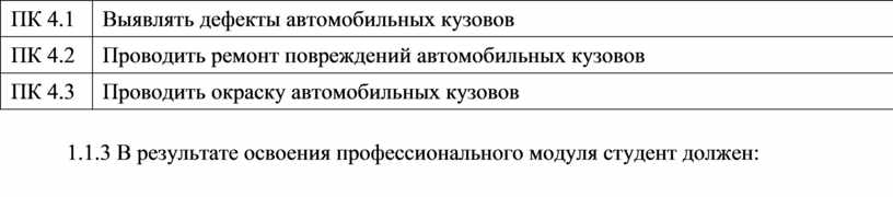 ПК 4.1 Выявлять дефекты автомобильных кузовов |